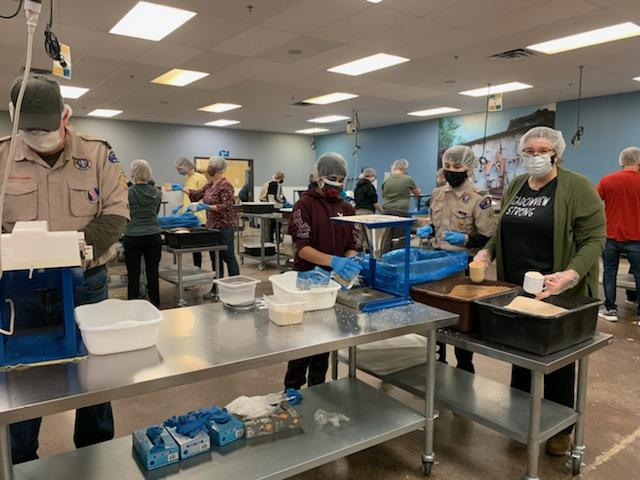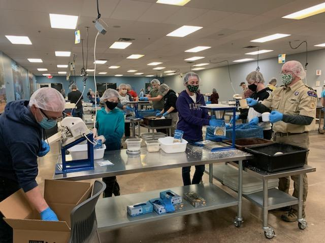 Troop 116 helped pack 70 boxes of food, which includes: 15, 121 meals, feeds 41 kids a meal per day for a year. It costs $3628, which comes to .24 cents a meal. Way to go!