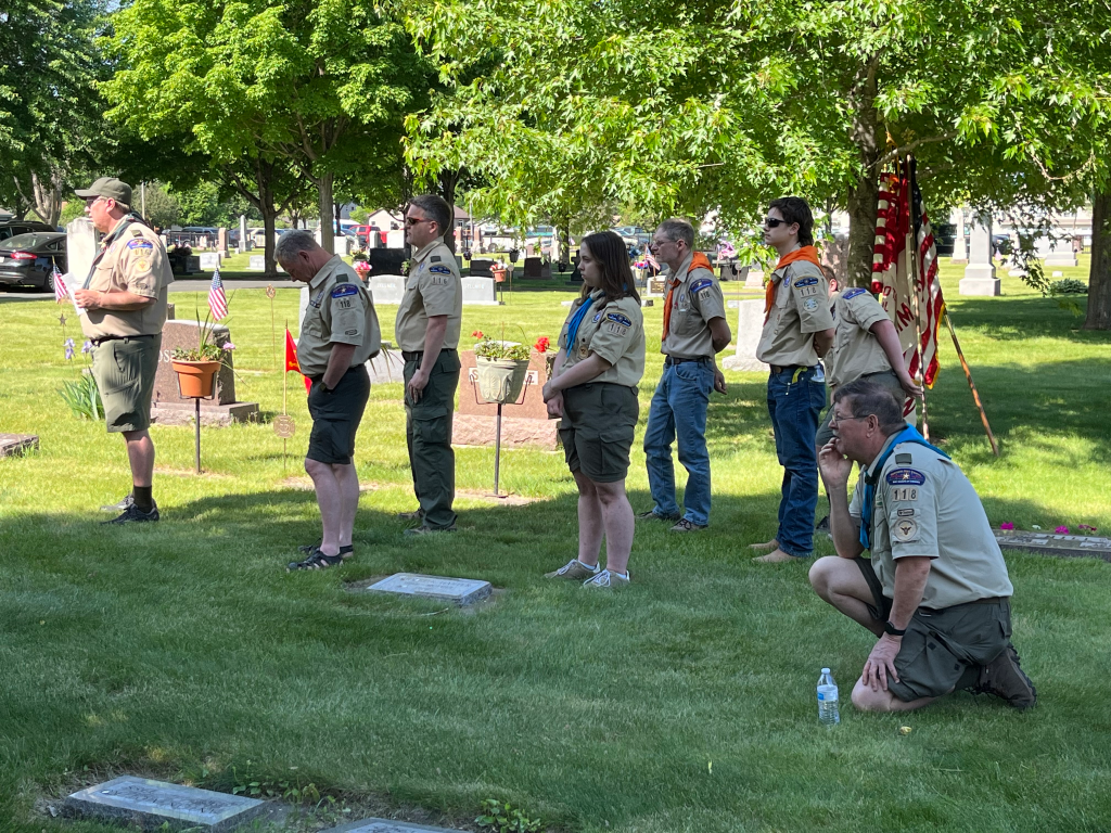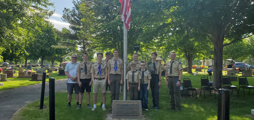 On May 29, 2023 members from Scout Troop 116 and 118 assisted with the ceremony at Corinthian Cemetery in Farmington.