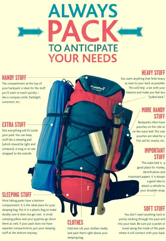 Check out this document to see how to best pack your backpack for a hiking trip.