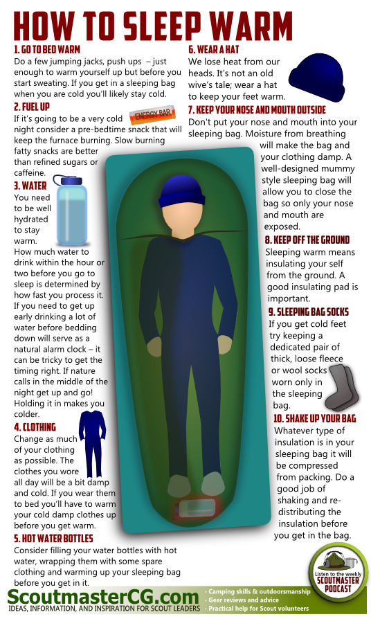 This document gives some great information on how to stay warm when sleeping in your sleeping bag during cold weather.
