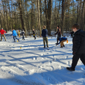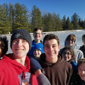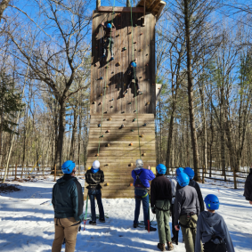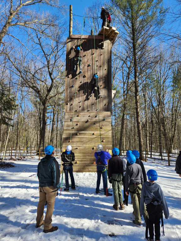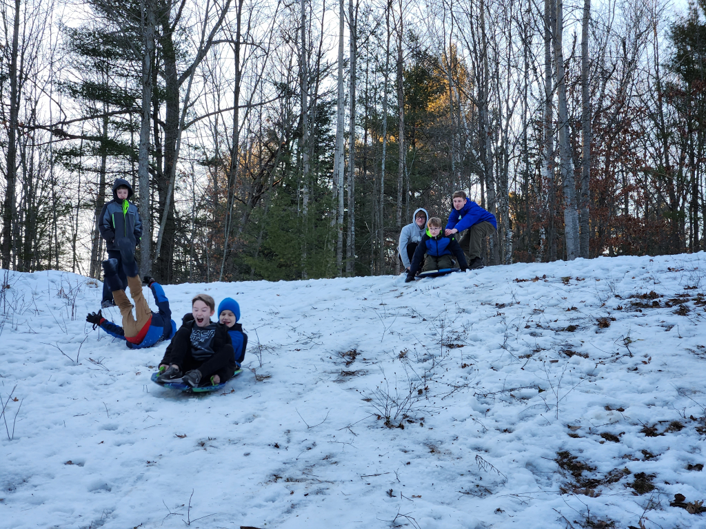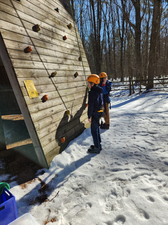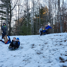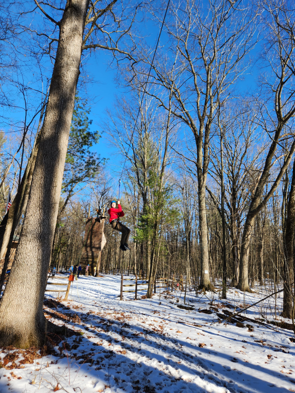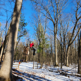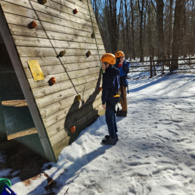 Climbing, sledding, and cabin camping at Cole Canoe Base in Alger, Michigan.