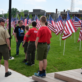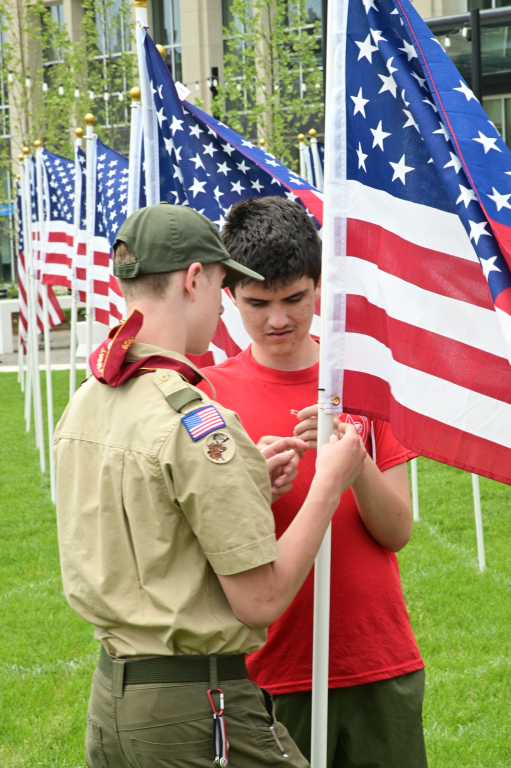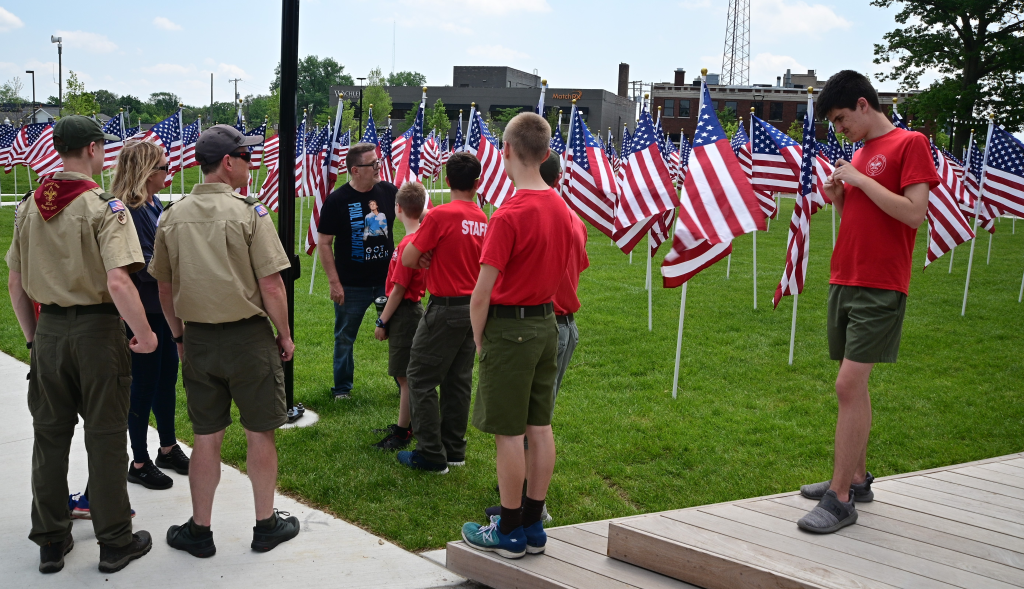 Troop 1610 is honored to have been selected to be the first group ever to stand watch over the memorial flags posted in Centennial Commons to honor those who gave their lives for our country. Royal Oak, Michigan.